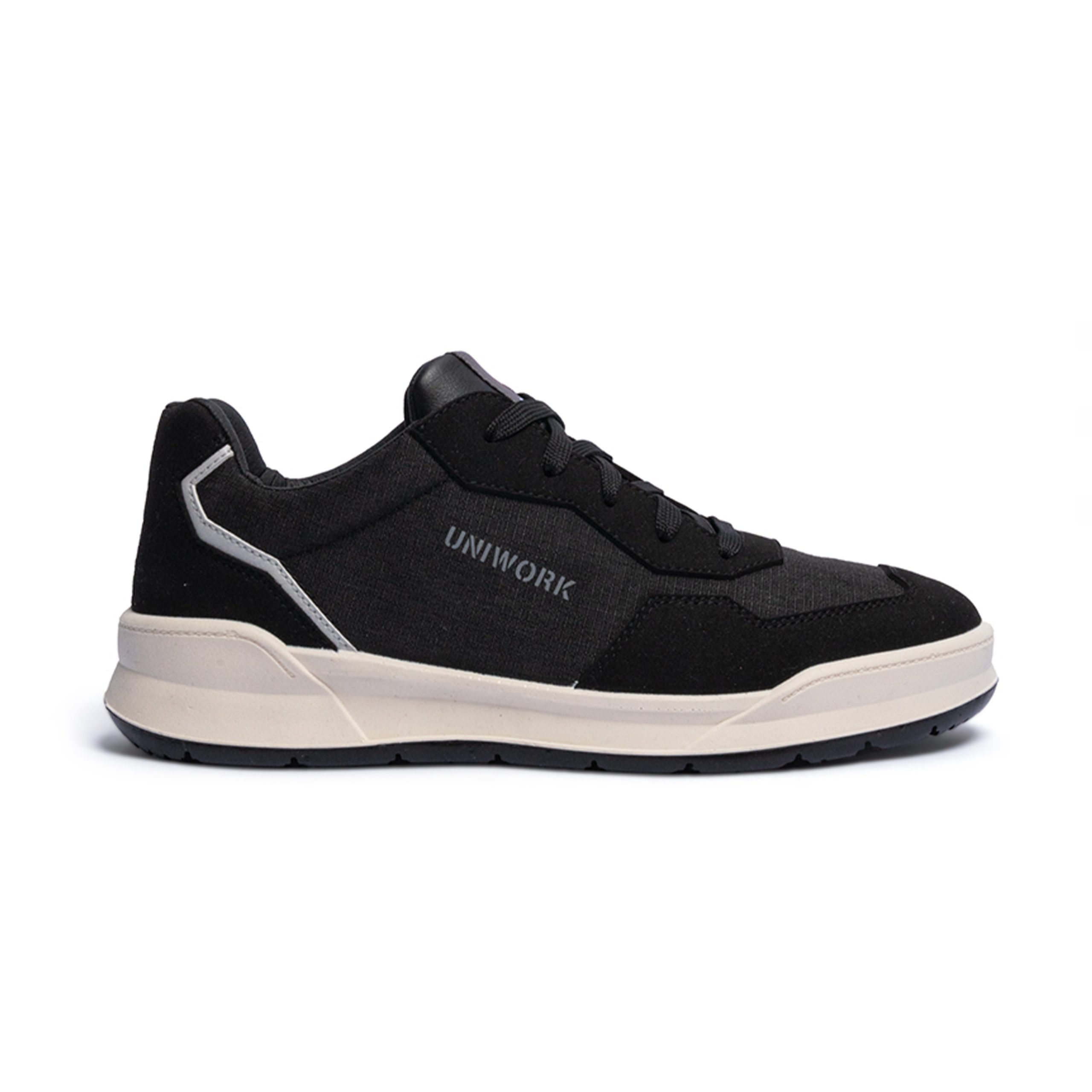 La NEK S3S CI HI FO SR de UNIWORK est une sneaker de sécurité certifiée EN ISO 20345:2022, conçue sans métal : elle combine une tige en microfibre et textile, un embout composite, une semelle anti-perforation textile de 3 mm, et une semelle extérieure en polyuréthane bi-densité “sneaker”. Sa doublure en microfibre Arnedry California offre confort et respirabilité, et elle existe du 35 au 48.
