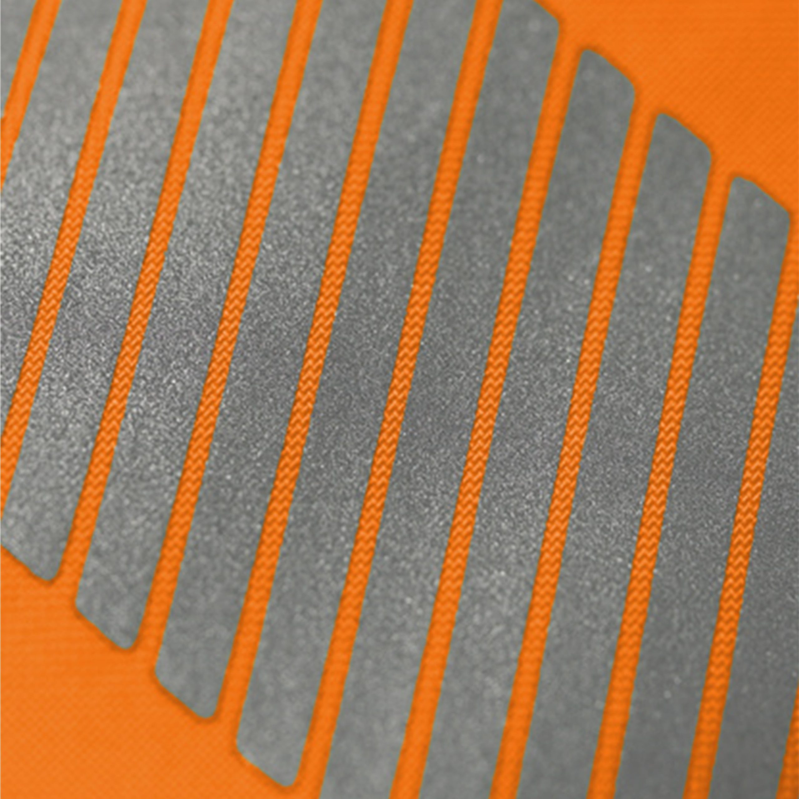 Côté sécurité, ce modèle est équipé de bandes rétro-réfléchissantes segmentées : deux bandes verticales sur les côtés et une bande au-dessus des épaules, offrant une visibilité optimale en conditions de faible lumière.