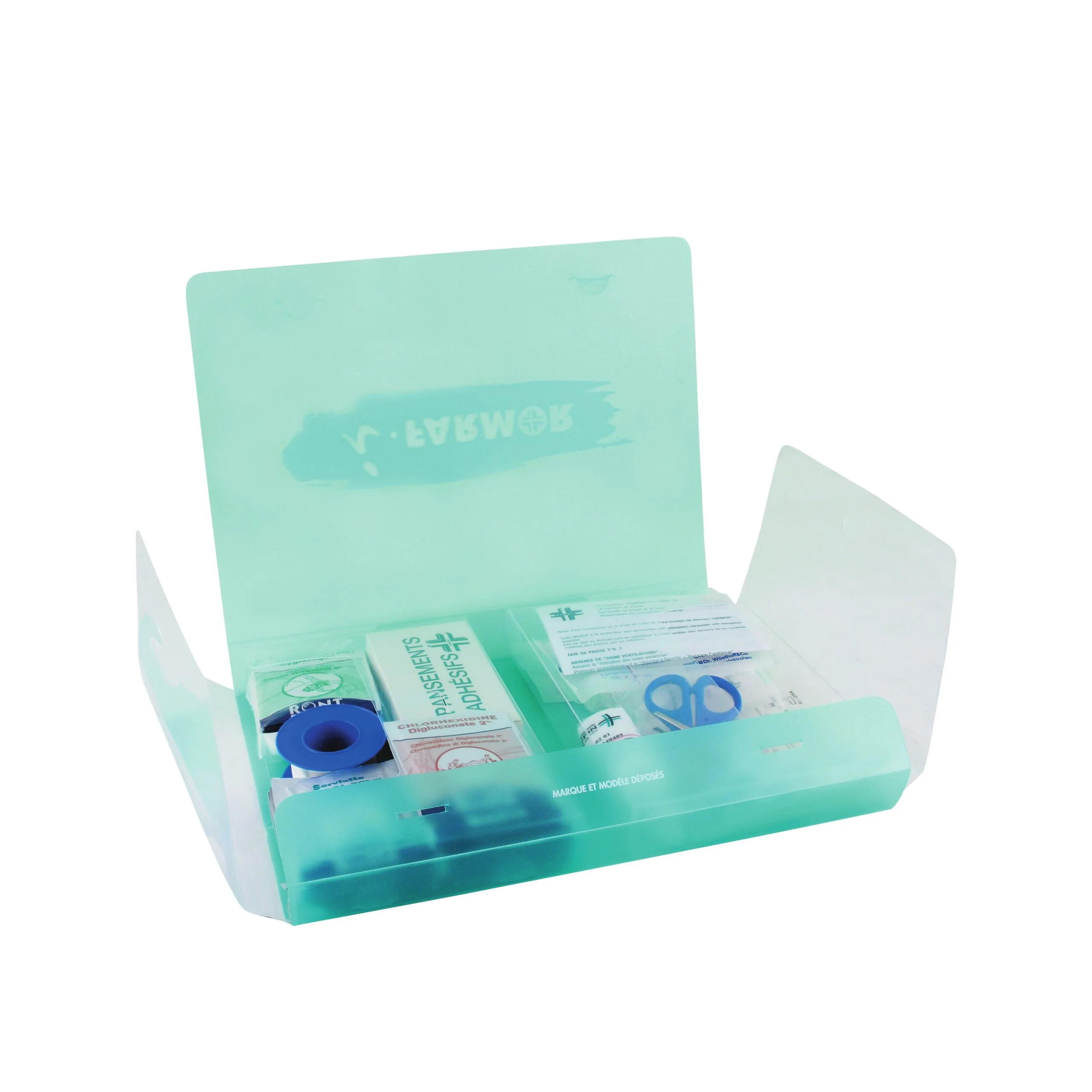 Compact, ergonomique et conforme aux besoins d’une petite équipe, il offre une couverture complète des premiers soins en environnement professionnel.