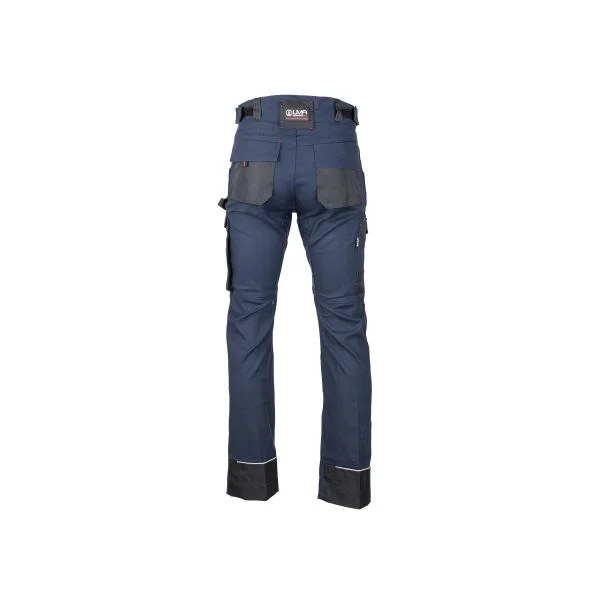 Pensé pour les professionnels actifs, il propose de nombreuses poches techniques : poches genouillères double position, poches cuisses à rabats et soufflets avec applications Oxford, poches dos semi flottantes, poche mètre renforcée, attache porte-marteau, etc. Des inserts rétro-réfléchissants perforés assurent visibilité et sécurité. Les renforts à l’entrejambe et aux bas de jambes garantissent une plus grande longévité même dans les conditions de travail intensives. Un vêtement idéal pour les métiers du bâtiment, de la logistique ou de l’industrie.