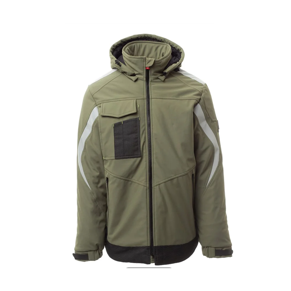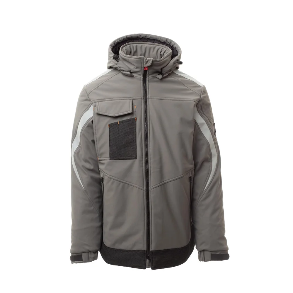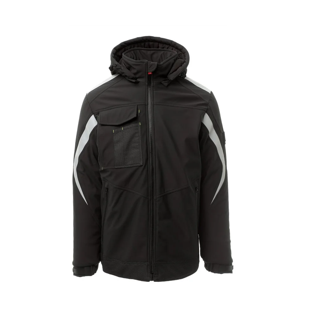 Soft-shell rembourré pour homme, fermeture par zip SBS avec curseur en métal à verrouillage semi-automatique et tirette personnalisée. Capuche amovible, avec coulisse réglable. Bande rétroréfléchissante sur les épaules et les bras. Poignets élastiques, réglables par velcro et poignet intérieur. Poche poitrine Lock System avec rabat, porte-badge et porte-stylos. Deux poches latérales fermées par zip avec ruban enduit. Élément « life-saving » au dos, avec logo interne rétroréfléchissant, fermé par zip enduit. Deux poches intérieures dont une avec porte-tablette fermée par velcro et une profilée avec zip sur poitrine côté droit. Bas réglable avec stoppeurs personnalisés. Tissu alvéolé avec effet rétroréfléchissant.
