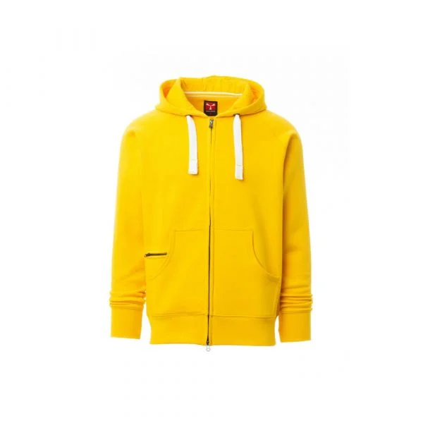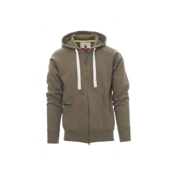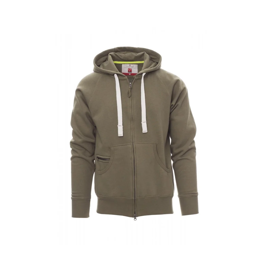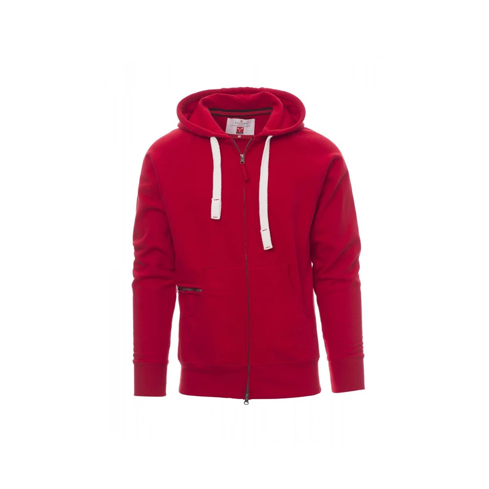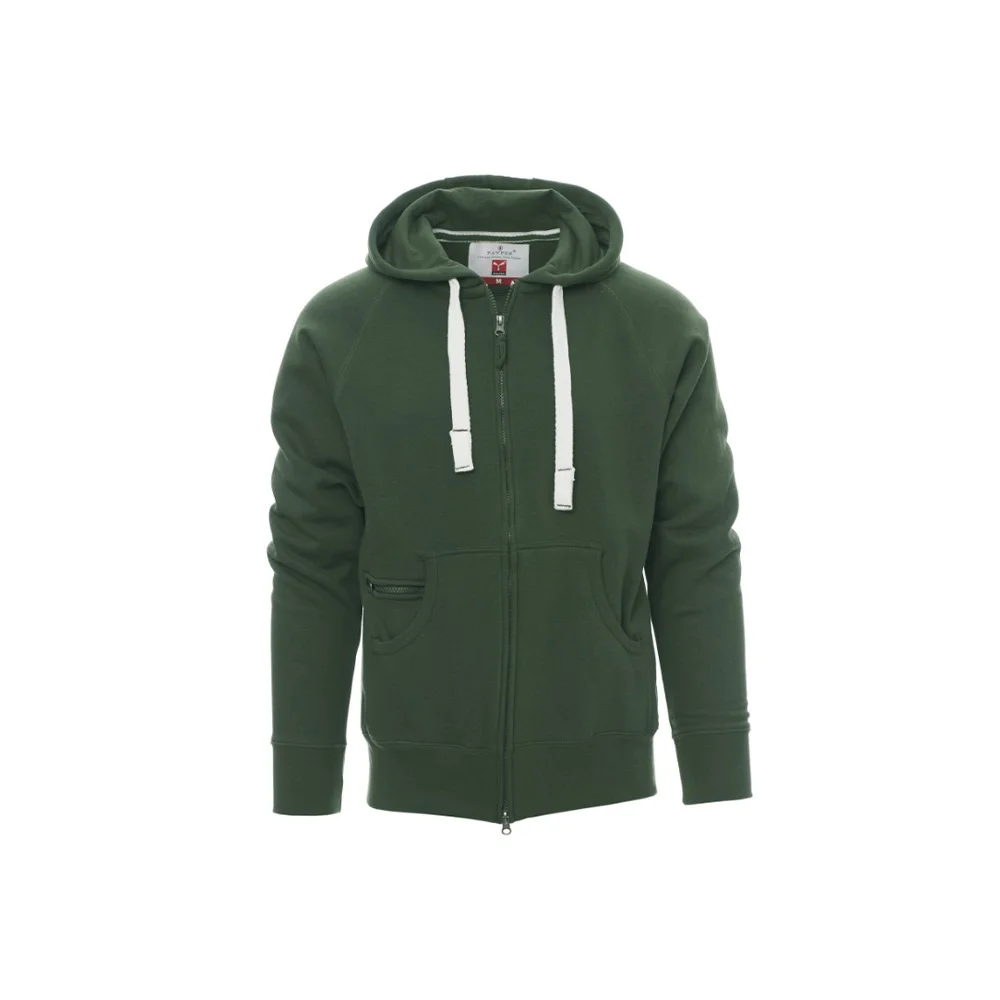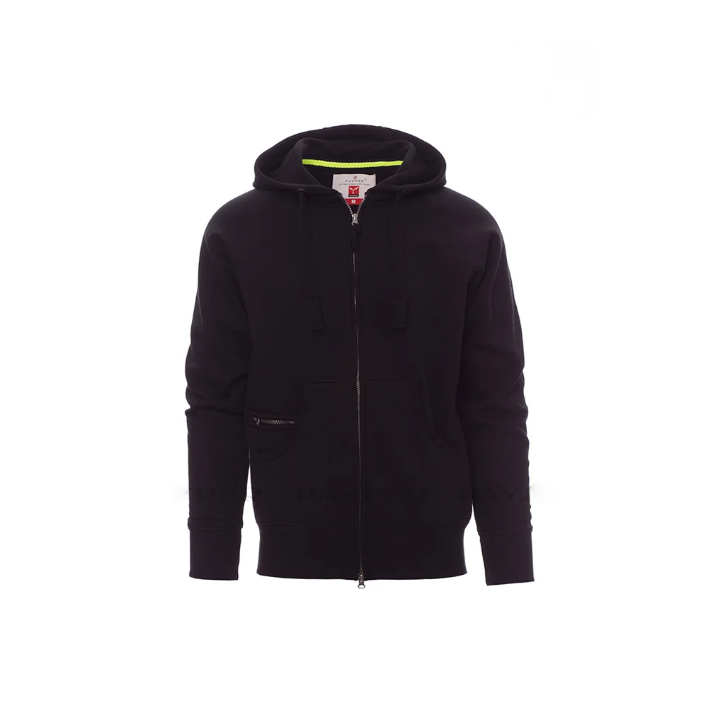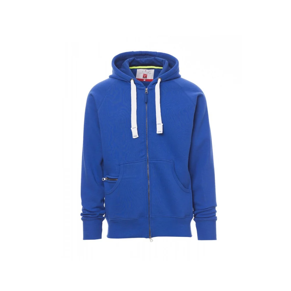 Le Payper Dallas est un sweat-shirt à capuche polyvalent, conçu pour allier confort, durabilité et style. Fabriqué en un mélange de 70 % coton et 30 % polyester brossé (300 g/m²), il est doté d’une fermeture éclair SBS en plastique avec double curseur métallique. Sa capuche est renforcée avec coutures doubles et équipée d’un cordon avec des détails contrastés en métal. Les manches raglan, les poches kangourou (incluant une petite poche zippée), les poignets et la taille en côtes élastiques ajoutent à sa praticité et son confort. Disponible en tailles XS à 5XL et dans plusieurs coloris, il s’adapte à une utilisation quotidienne ou professionnelle, avec des coutures renforcées pour une grande résistance à l’usure.