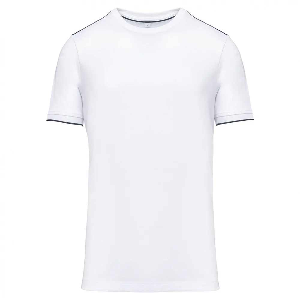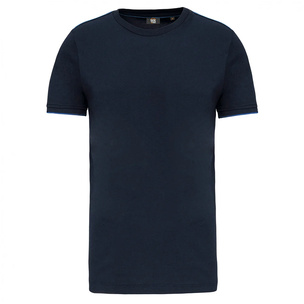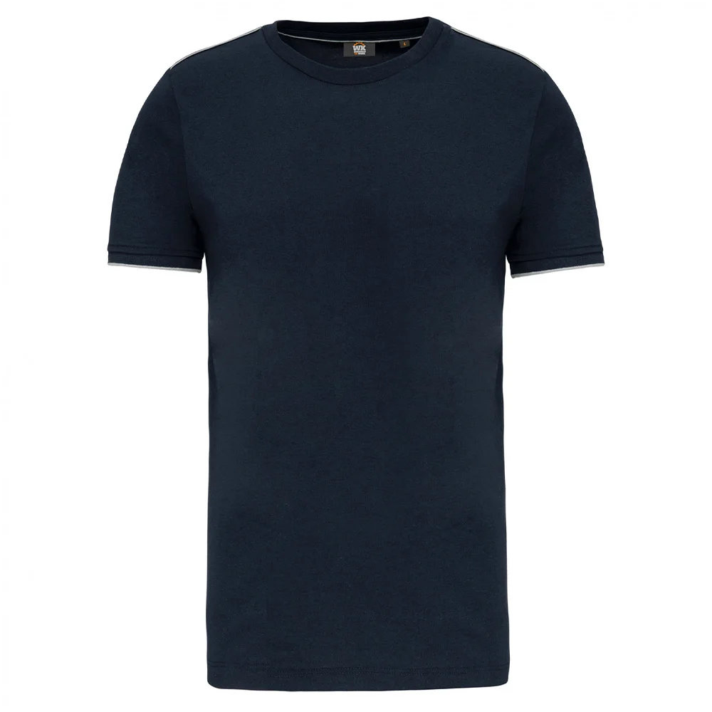 Lavable à 60°. Traitement antiboulochage. Encolure ronde avec élasthanne. Passepoil contrasté intérieur col et épaules. Finition bas de manches en bord-côte avec liseré contrasté. Finition double aiguille au bas de vêtement. Idéal pour une utilisation quotidienne.