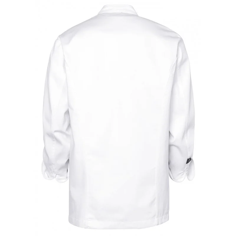 Classique et élégante, cette veste de cuisine facile d’entretien confère aussi un confort accru à son porteur grâce à son tissu antibactérien et à ses œillets d’aération.